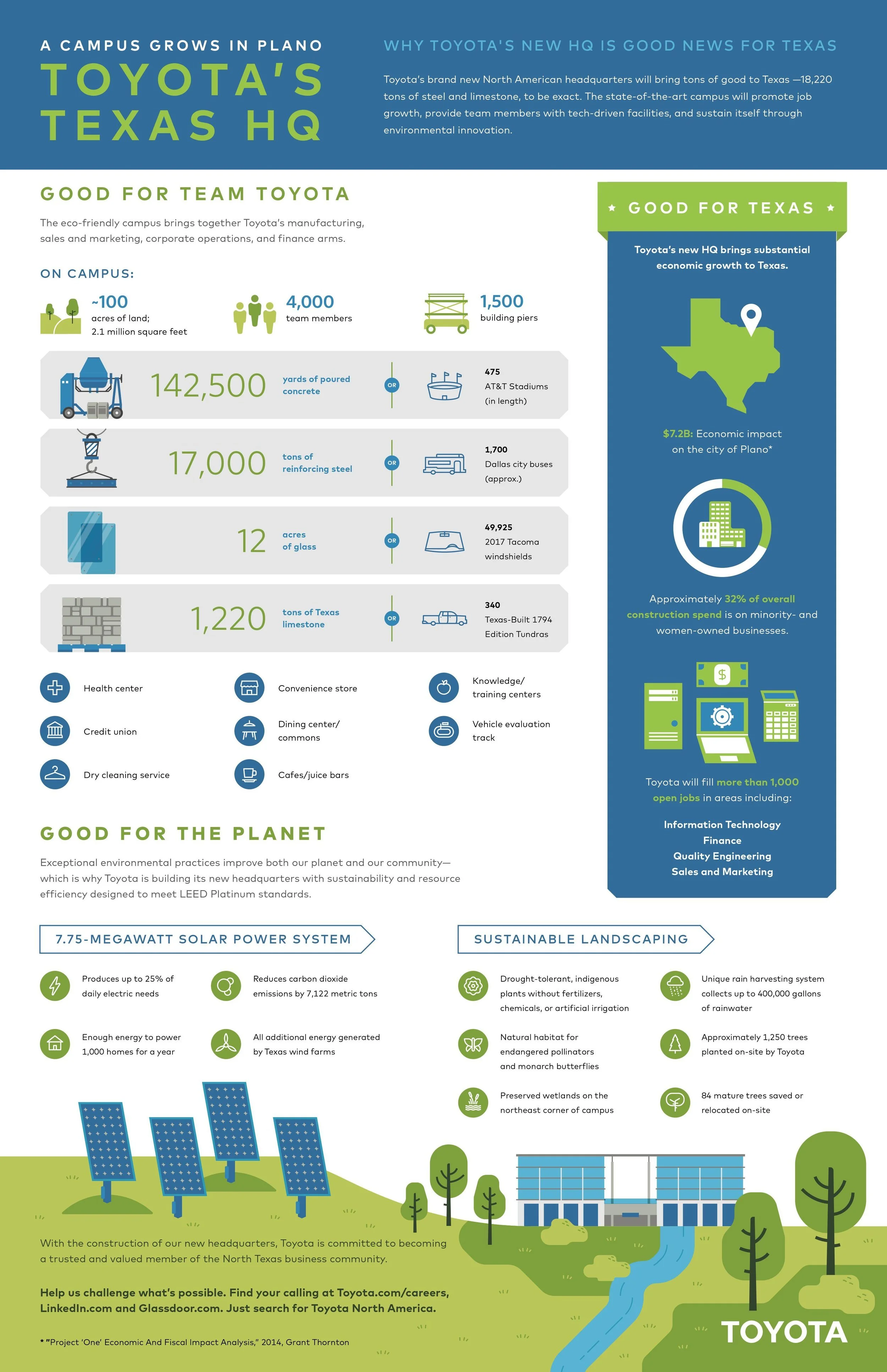Highlight the economic and environmental benefits that Toyota’s new headquarters will bring to Toyota, Texas, and the planet.
