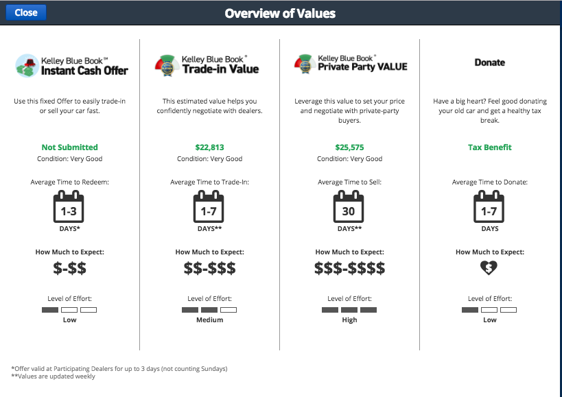Kelley Blue Book provides car owners and buyers with industry values and guidance. After clicking “What’s my Car’s Value”, users are taken the pages you see here. This hub allows users to compare values and decide what option best suits their needs.