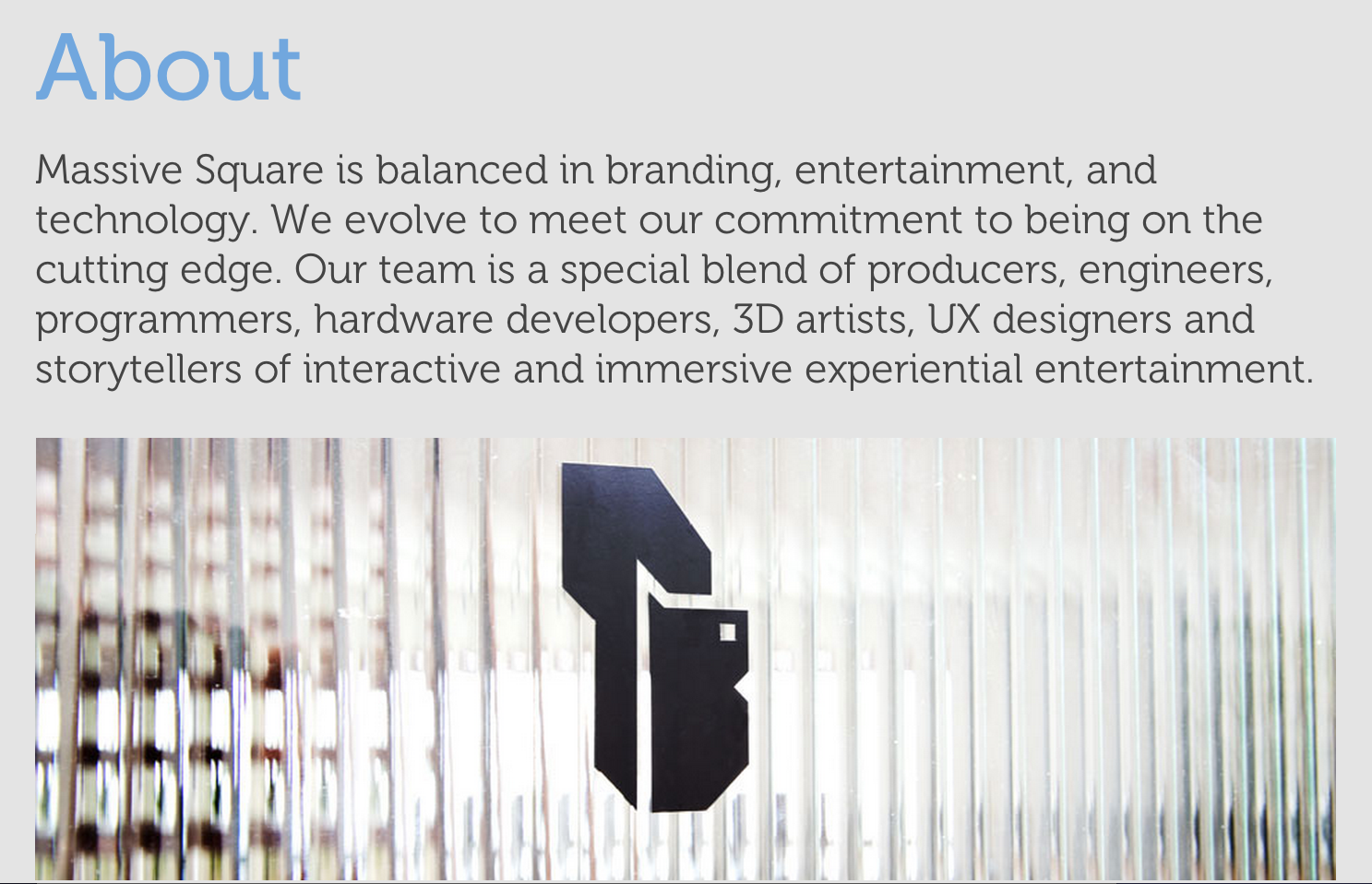 Highlight Massive Square’s expertise in immersive technologies to acquire new business with advertising agencies, movie studios, and the industrial sector.